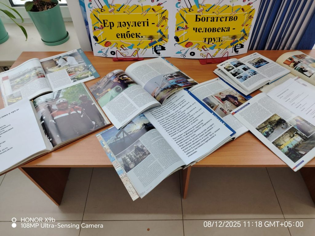 The exhibition features magazines with articles about labor, as well as collections of quotes and proverbs that help to better understand the value of work.