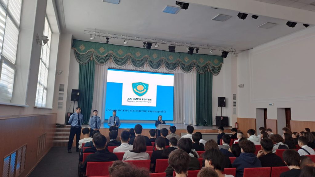 Студенттерге Жол жүру ережелерін сақтаудың және «Таза Қазақстан» бағдарламасы аясындағы экологиялық бастамаларға қатысудың маңыздылығы ескертілді. Кездесу түрлі құқық бұзушылықтардың құқықтық салдарын талқылаумен аяқталды, бұл білім алушыларға заңға бағыну мінез-құлқының өмірлік мақсаттарға жету мен табысты болашаққа бастайтын негізгі ресурс екенін түсінуге мүмкіндік берді.