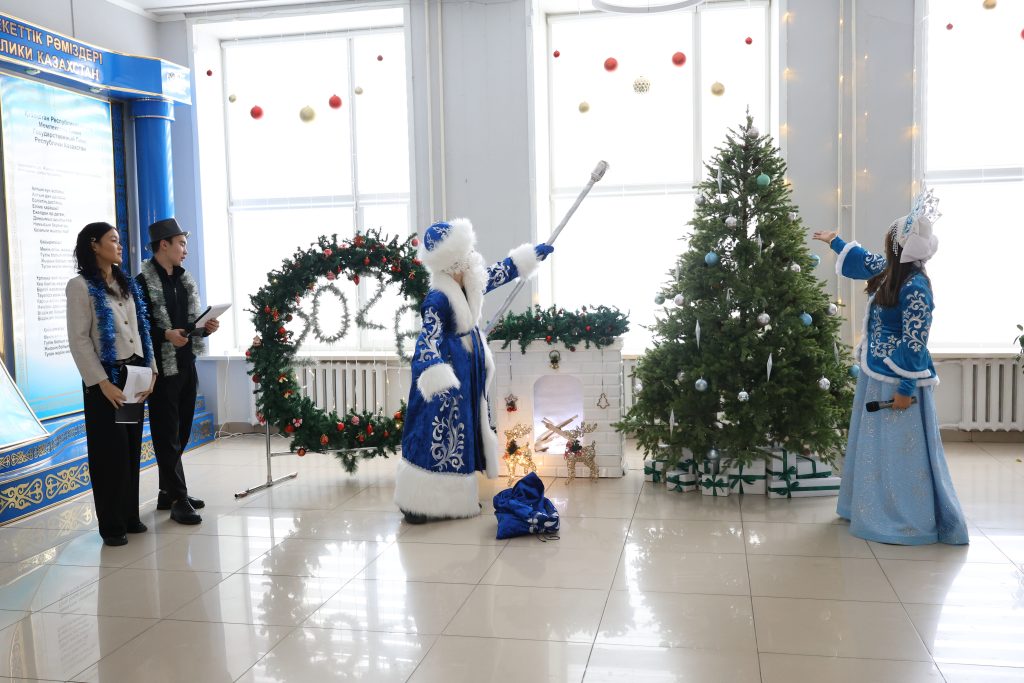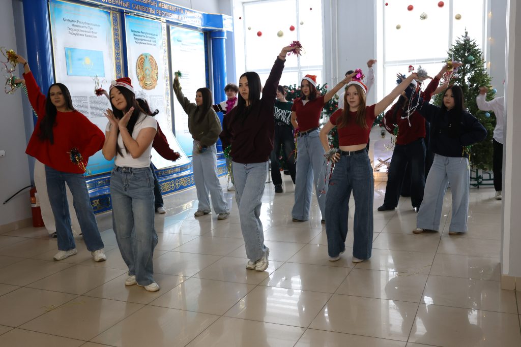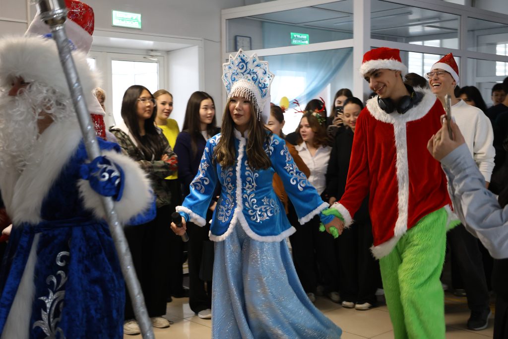 Студенттер көңілді хороводқа қатысып, жаңа жылдық өлеңдер оқыды және мерекелік бағдарламаны белсенді түрде қолдады. Шараның ең әсерлі сәті — шыршаның шамдарын салтанатты түрде жағу болды, бұл сәт қатысушылардың зор қошеметімен сүйемелденді.
