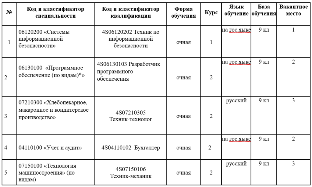 Вакантные места имеющиеся в КГКП «Костанайский политехнический высший колледж» Управления образования акимата Костанайской области