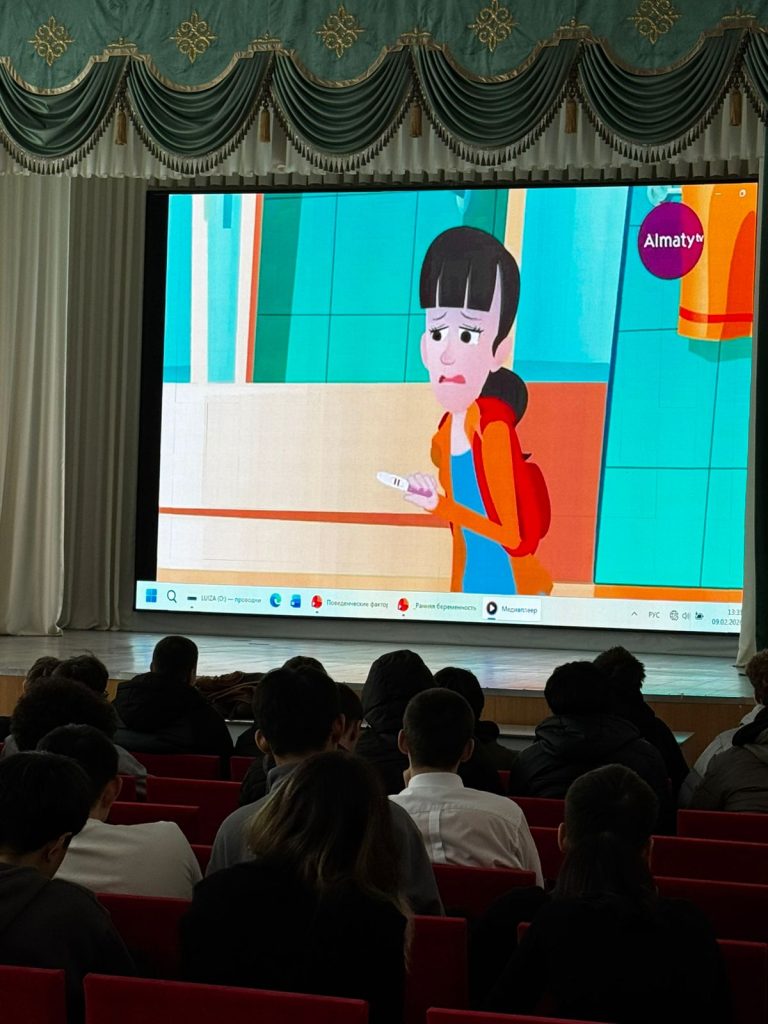 Репродуктивті денсаулықты сақтау және қалаусыз жүктіліктің алдын алу мәселелеріне ерекше назар аударылды. Дәріс аясында қатысушыларға қалаусыз жүктілік проблемасы және оның мүмкін болатын салдары туралы бейнематериал көрсетілді.