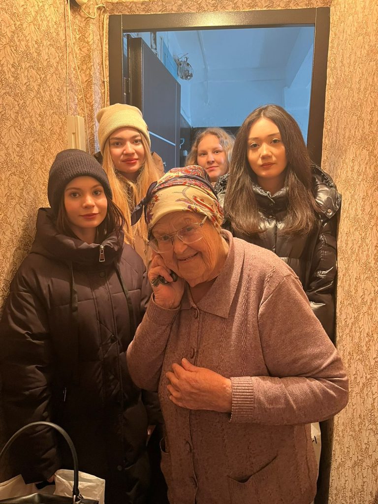 Халықаралық әйелдер күні қарсаңында 2B-7 тобының студенттері топ жетекшісі Сәуле Қалиевна Амантаевпен бірге колледжіміздің ардагер ұстазы және құрметті зейнеткері Надежда Васильевна Солянкинаға барды.