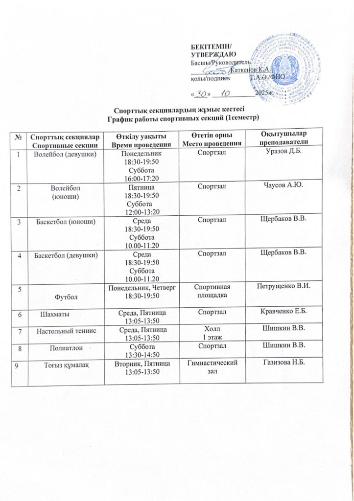 Спорттық үйірмелерді өткізу кестесінің өзгергені туралы хабарлаймыз.