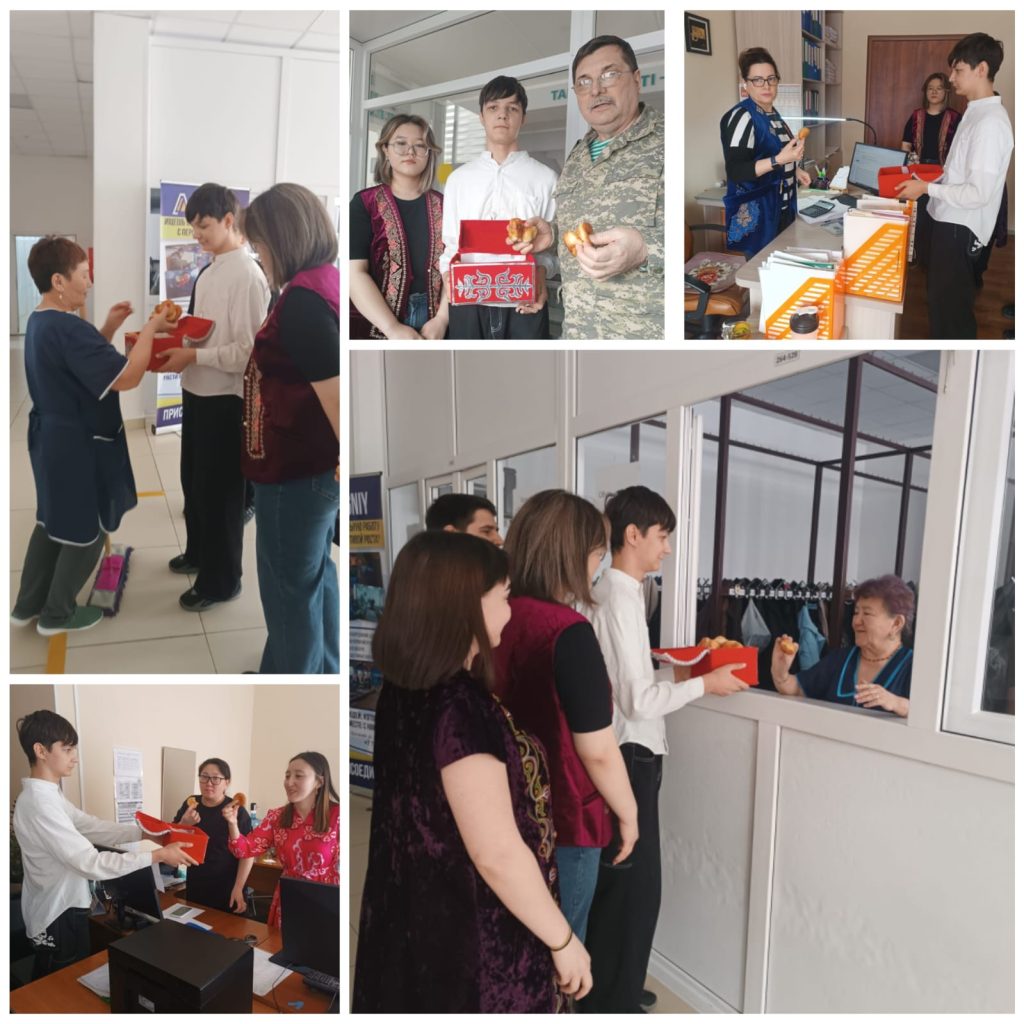 Студенттер қызметкерлерді тек тамақтандырып қана қоймай, сонымен қатар барлығын келе жатқан Наурыз мерекесімен құттықтап, оларға бейбітшілік, молшылық және көктемгі жаңару тіледі.