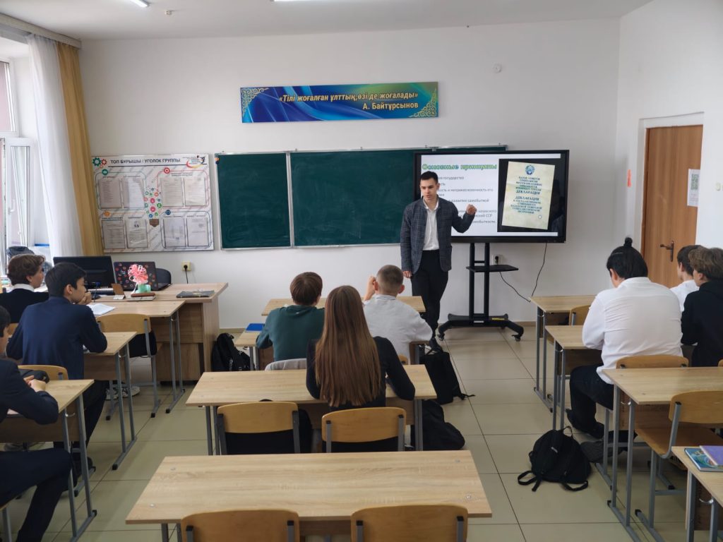 В ходе лекции студенты познакомились с ключевыми положениями Декларации о государственном суверенитете, принятый 25 октября 1990 года, а также обсудили её роль в укреплении государственной независимости, развитии экономики и культуры страны.