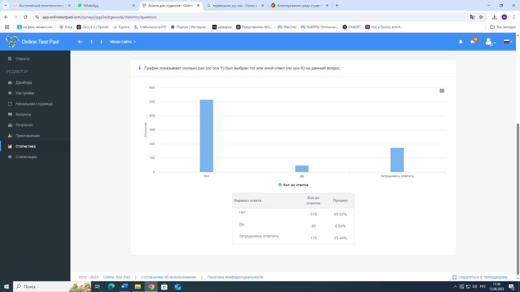 На вопрос «Допустимо ли, на Ваш взгляд, решать некоторые вопросы «неофициальными» путями в колледже?» ответили нет- 83% (610 человек).