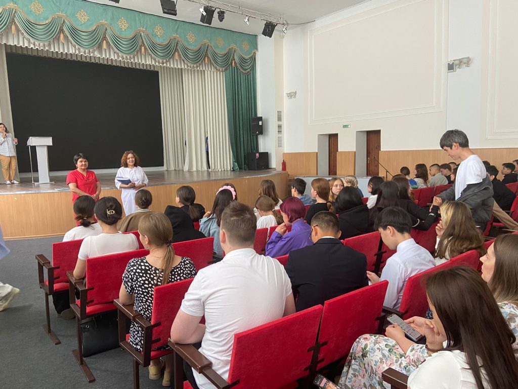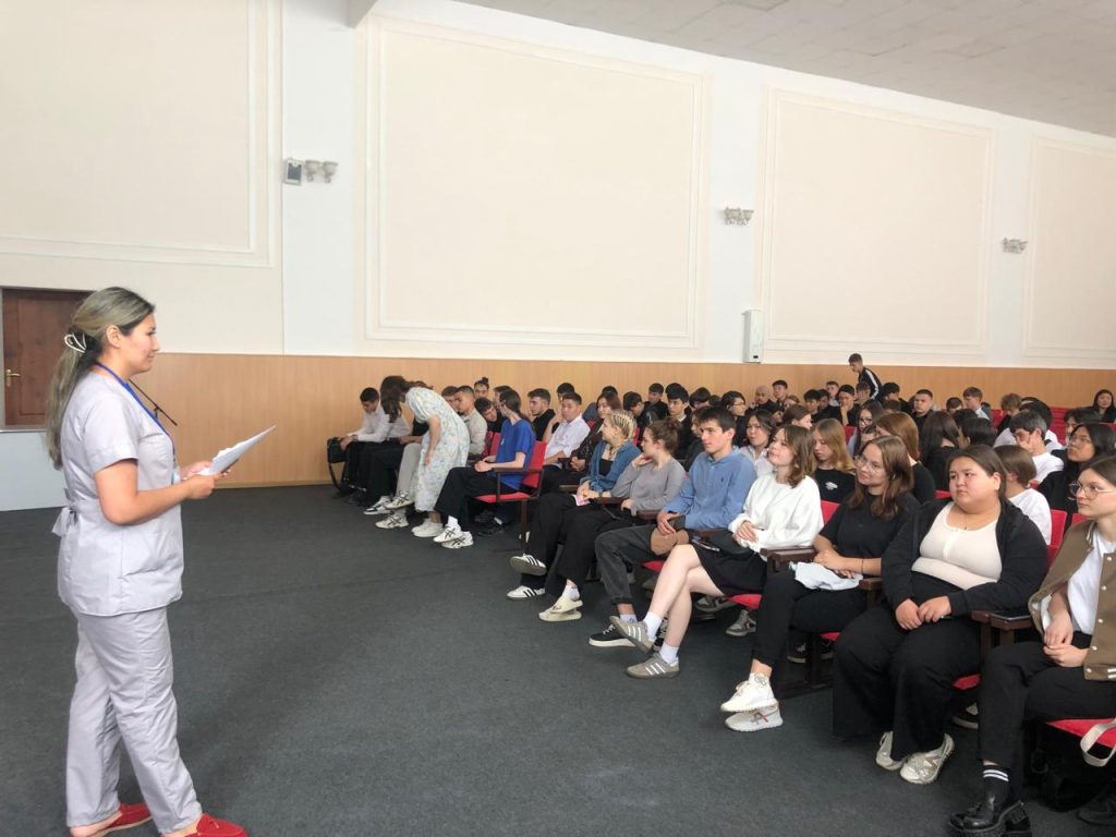 12 июня в актовом зале колледжа прошло крупное профилактическое мероприятие под названием «Наркотики – не моя тема!» в рамках цикла встреч «Өмірге салауатты қадам» («ЗОЖ – шаг к жизни»). В мероприятии приняли участие 278 студентов первого курса, которым была предоставлена важная и полезная информация о здоровом образе жизни, вреде наркотиков, вейпов и электронной сигаретной продукции.