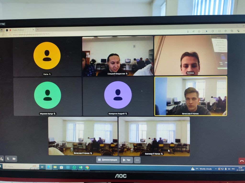 По инициативе студентов 4 курса ФЕМИ, г.Нижний Тагил, Россия 21 декабря 2023 года был организован и проведём интеллектуальный баттл между студентами филиала и студентами Костанайского политехнического высшего колледжа. В качестве соорганизаторов выступили преподаватели специальных дисциплин кафедры ЭиИД КПВК Уаисова М.М. и Машенькин И.С.
