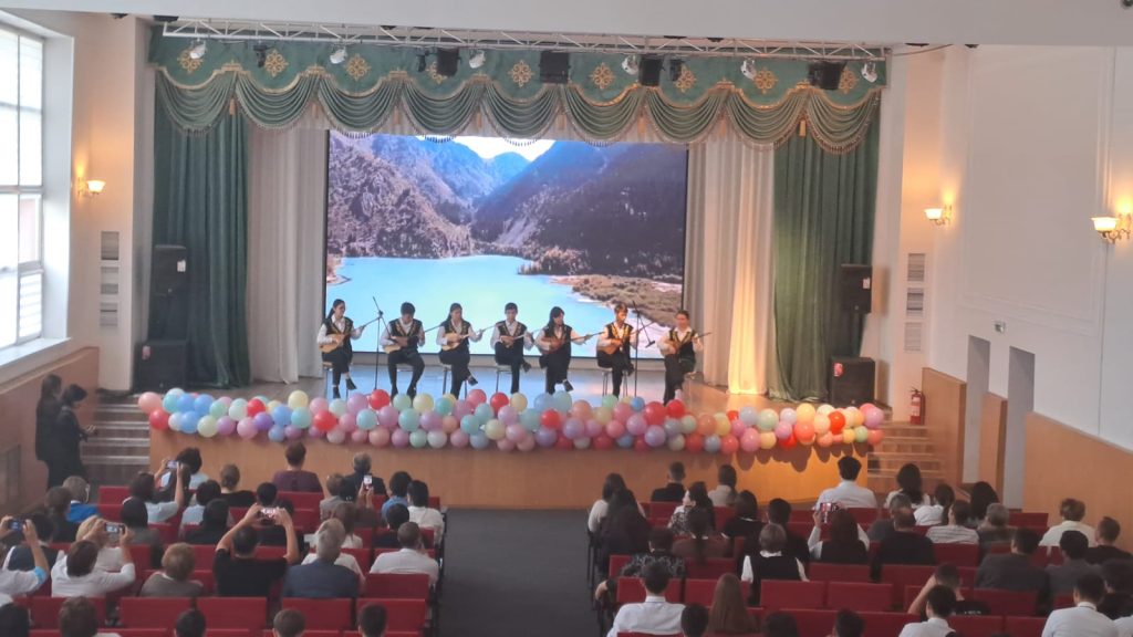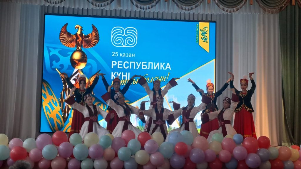 Концертную программу открыл яркий казахский танец в исполнении группы «Мирас». Далее сцену заняли домбристы: Нұрғазина Айша, Мирамов Жақсылық, Сейілхан Гүлназ, Қонақбаева Аяулым, Маутов Мүслим, Мағзұмова Анель, Бейсенова Ләйли, Жұмағұлов Алдияр исполнили кюй «Ерке сылқым», наполнив зал чарующими звуками национального инструмента. Тему любви к родной земле продолжила Әдебиет Сабина, исполнившая песню «Туған жер». Особым подарком стало выступление преподавателя русского языка и литературы Нургалиевой Жанар Бауржановны, которая поздравила всех с наступающим праздником, исполнив песню «Атамекен».