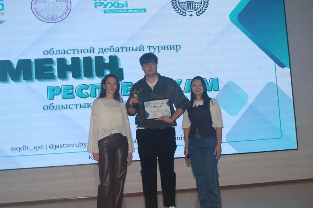 Кроме того, команда в составе Олусмаева Турпал-Эли Руслановича и Кусеубаевой Карины Азаматовны заняла 1 место в областном дебатном турнире среди молодежи «Менің Республикам».
