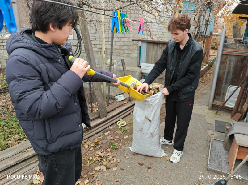 Вооружившись граблями и мешками, ребята быстро и дружно справились с работой. Для бабушки это стало приятным сюрпризом, ведь теперь её двор чист и ухожен.